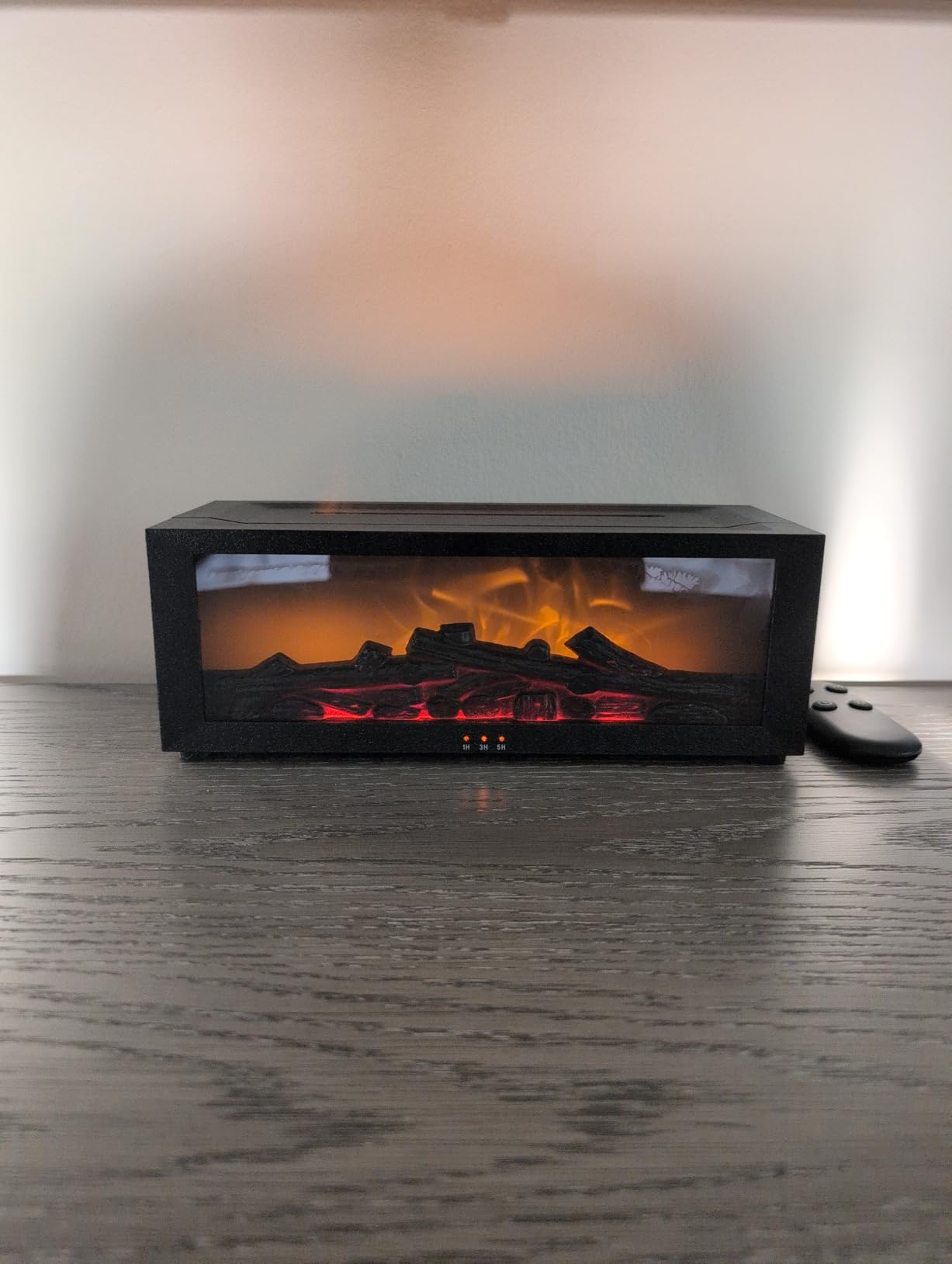 I love this diffuser! The flame effect looks beautiful and cozy, almost like a real mini fireplace, which makes the room feel warm and relaxing. It works great as a humidifier too, adding just the right amount of moisture to the air. The mist is steady, the design is modern, and it’s very quiet when running. Perfect for creating a calming atmosphere at night. Definitely worth it!